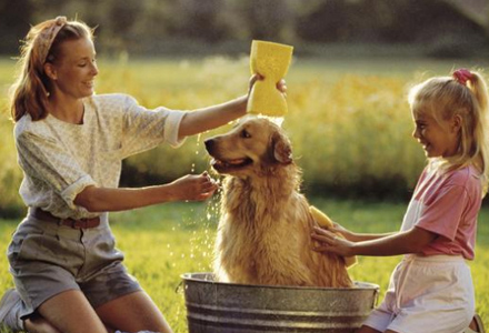 给宠物狗洗澡应该选择使用专用的宠物香波,其它一些人用的或者是其他宠物用的沐浴露、洗衣粉、洗洁剂等等,这都不适合给宠物狗使用。而且,在给宠物狗洗澡的时候,也要正确的使用香波,这样才能达到养护狗狗皮毛的效果哦。