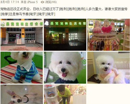 圣宠宠物店(天津河西店)发微博表示非常高兴