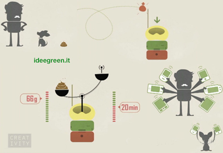 图像很清晰地显示出该业务流程:狗屎被主人扔进回收设备里,狗屎自身的重量会置换相应的免费WIFI时长,比如这一坨66克,换来20分钟。