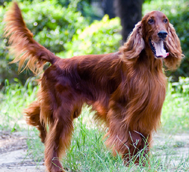 顾名思义,爱尔兰雪达犬来自于爱尔兰,由古老红色猎鹬犬>英国雪达犬和波音达犬配种而成。1876年,阿尔斯特爱尔兰雪达犬协会正式更名为爱尔兰雪达犬,18世纪后受到英国人的喜爱。
