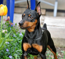 迷你杜宾犬原产于德国,属于古老的犬种,源于传统的德国梗。1895年“德国迷你犬俱乐部”成立后才开始流行起来。德国人一开始称迷你杜宾犬为“黎品池犬”(RehPincher),因为它们长得很像生活在德国森林里的小獐子(“reh”在德文中就是獐子的意思)。美国于1929年成立“迷你品犬倶乐部”之后,迷你杜宾犬才渐渐开始在比赛会场上崭露头角,并受到美国人的肯定。