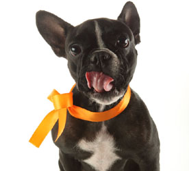 法国斗牛犬扁扁的脸上挂着憨厚的表情,有大大直立着像球拍似的耳朵、肥壮的四肢和小猪般的短尾巴,它以具喜剧效果的脸蛋而著称。