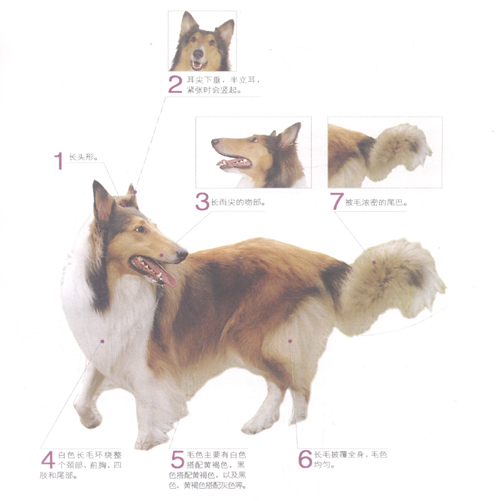 (7)毛色应淡黄、黑白、蓝灰和黑、灰、白三色混合。