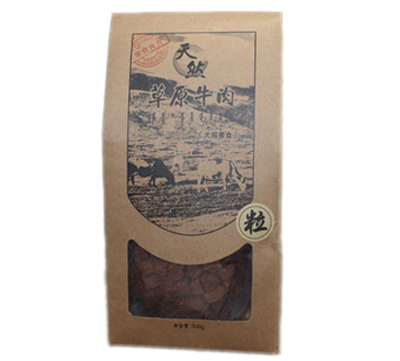 采用科尔沁大草原新鲜牛肉制成,蛋白质高、脂肪适中,特别添加螺旋藻、天然VE等营养物质。