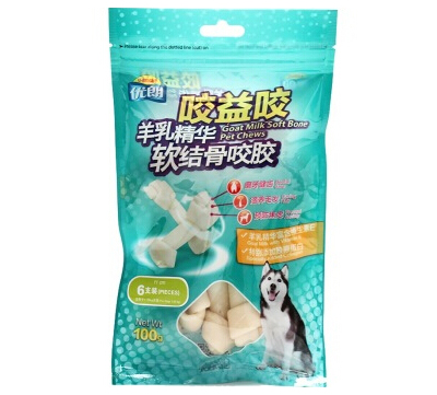 【原料组成】:淀粉、白身鱼、植物蛋白、丙三醇、胶原蛋白、羊奶粉、山梨酸钾、脱氢醋酸钠、抗坏血酸钠。