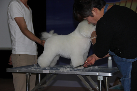 从韩国来到北京,为大家讲解比熊犬修剪的方法及技巧等等,同时针对各个不同级别、不同需求的
