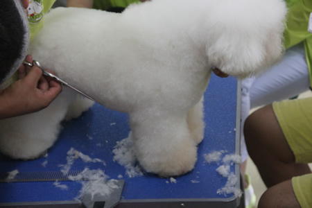 姜涛老师为学员讲解修剪比熊犬的注意事项