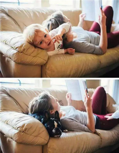 萌妹子和狗狗的同款照片,整颗心都萌化了,有木有啊~加拿大维多利亚市的一位摄影师母亲杰西为2岁的女儿艾拉和2岁的宠物狗斗牛犬查理拍摄了一系列创意同款照片,相同背景和姿势下的女儿和爱犬相映成趣,萌态十足。
