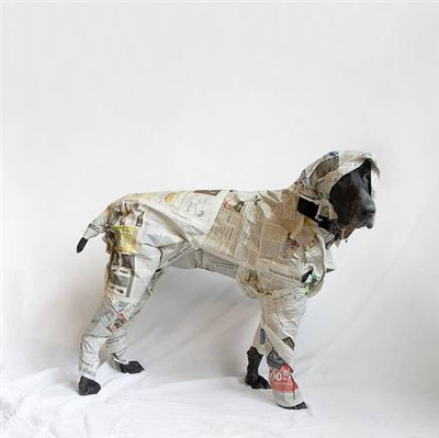 后来越来越喜欢拍照,每次做造型的时候都特别淡定地配合,这种全身裹满报纸的装扮换成一般狗狗早就暴躁了吧……