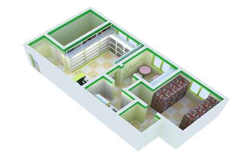 圣宠宠物,因为圣宠装修风格、产品、经营模式、对加盟商的支持都很符合刘女士的需求,加盟后总部就马上派人帮刘女士选址,以下是总部为刘女士制作的店铺设计图: