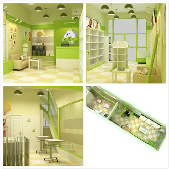 宠物加盟连锁,加盟后总部就对孙女士进行了一系列的服务,首先就是店面的选址与技术的培训,以下是总部为孙女士设计的装修效果图: