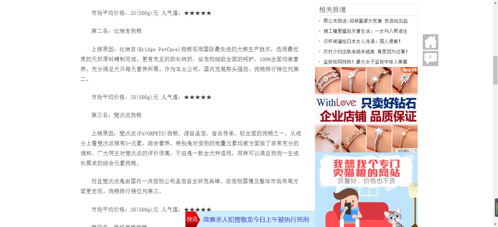 上榜原因:宝路狗粮(Pedigree),国内大规模生产,价格便宜,购买方便。宝路进入中国市场早,品牌形象影响力大,占据了线下狗粮市场的半壁江山,特别是打入了中年狗主人的市场。狗粮排行榜位列第六。