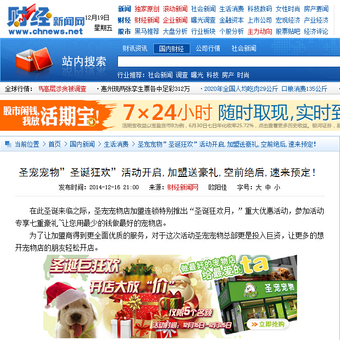 中国财经新闻网报道圣宠宠物“圣诞狂欢月活动”: