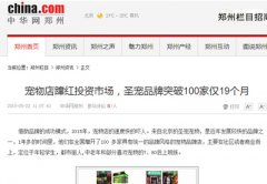 2015年5月22日,中华网、中国网、凤凰网等一线媒体报道了宠物店行业在投资市场中风头强劲,其中圣宠宠物连锁品牌以19个月的时间,突破 宠物加盟店 数100家的辉煌业……查看全文>>