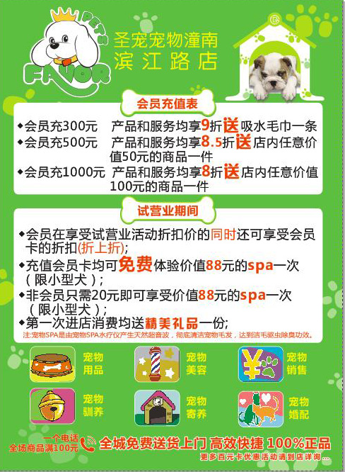 四月:三送五免八选五 限30天! 「圣宠4.0」宠物店加盟 三送(上门服务+装……[详情]