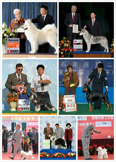 比熊犬,斯塔夫更,哈士奇,金毛,萨摩耶犬,吉娃娃,约克夏更,松狮犬,柯基犬等等,在比赛中获得BIS,BIG,BOB奖项无数。