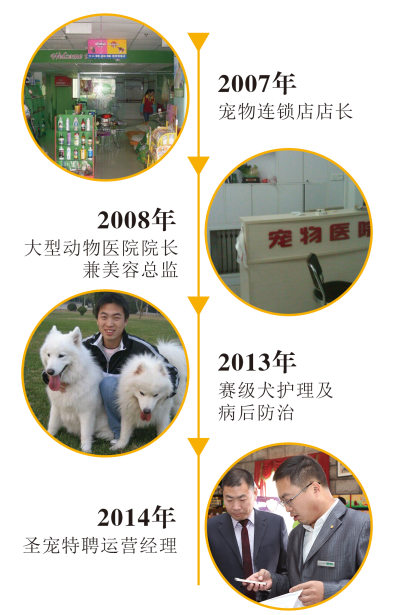 曹 兴 (圣宠运营部经理) 2013年4月至2014年2月就职赛级犬业俱乐部,负责赛级犬的护理及疾病防治。 2014年8月至今,担任圣宠宠物运营部经理,保障所有加盟店铺成功开业经营。 动物医学专业,经营宠物医院10年经验,是一个具备宠物医师、美容师、店铺经营师等综合能力,专业实践是最大特长。