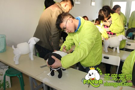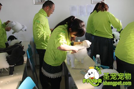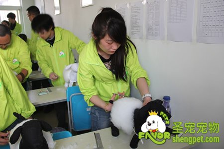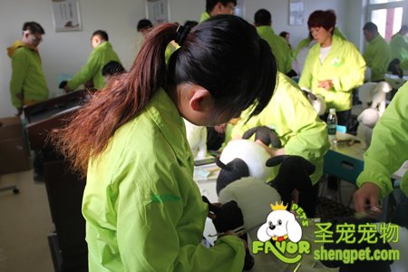 许多人在咨询圣宠的时候问为什么你们用假毛练习呢?其他学校都是用实犬练习的。下面小编就来给大家介绍下假毛练习的真正目的,假毛练习是锻炼学员拿剪刀方法,而且这样也避免了学员面对实犬的时候手抖的现象,万一误伤自己或者