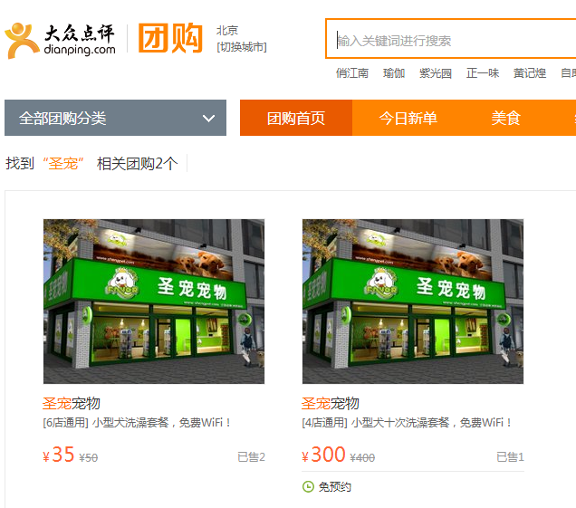 圣宠宠物与大众点评达成企业合作,为圣宠所有加盟上添加团购信息,并且通过不断优化增加网络到店客户,可实现线上客户转线下积攒更多客户资源。