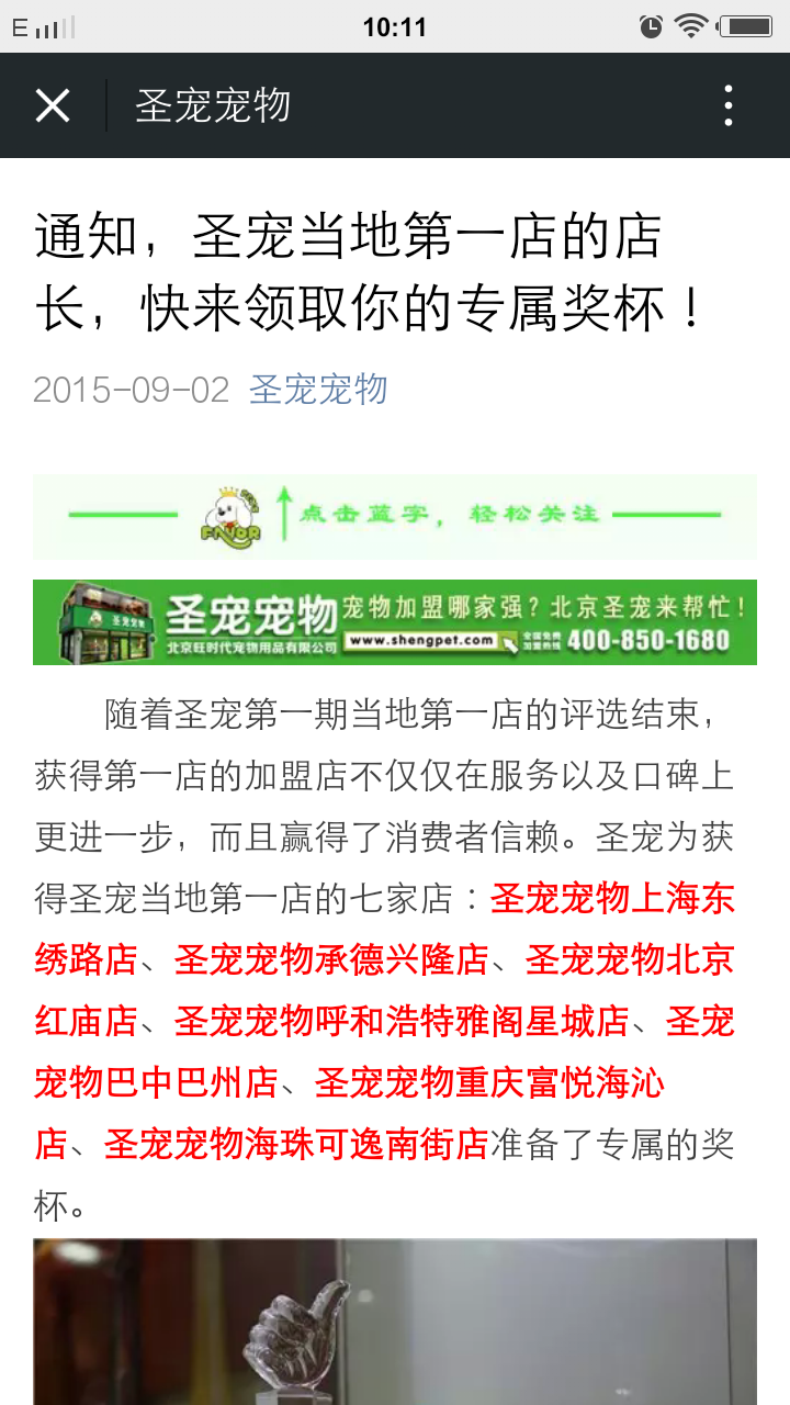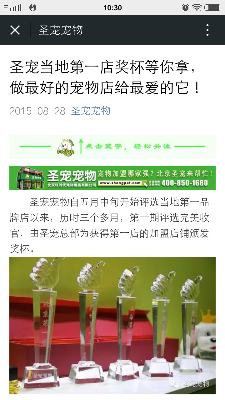 圣宠宠物店铺宣传推广以实现加盟商盈利为目的,成功的开业活动的可以吸引一部分客户,但不并不是宠物店全部的客户,要想让更多的人知道您的店铺还需要做相应的宣传推广,圣宠采取线上线下相结合的方式为加盟商全方位的宣传推广,从百度搜索、地图、点评、团购、微信、微博等等,各大主流媒体投放宣传。,加盟圣宠即可拥有,好服务,当选圣宠…更多>>