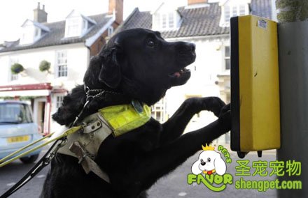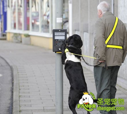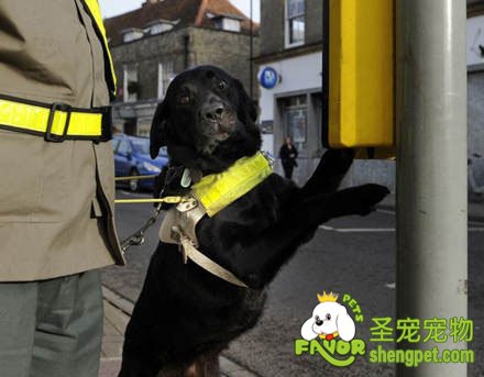 拉布拉多导盲犬“米勒”会用后腿站立按下红绿灯按钮,帮助主人过马路。