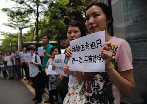 深圳福田人民医院2名保安(保全人员)14日疑似虐猫,被拍下影片向媒体爆料,今天(17日)一群动物保护人士聚集这家医院,以行动表达对虐猫事件的不满,并呼吁尽快立法保护小动物。