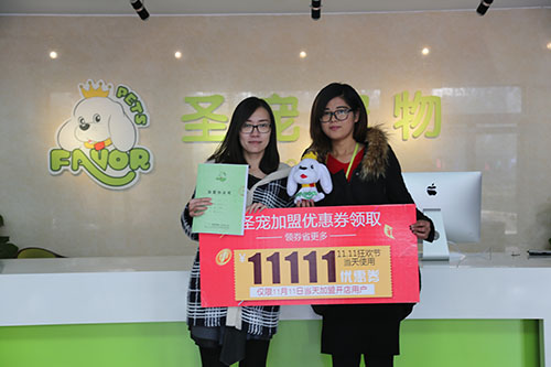 恭喜天津耿女士成功签约圣宠形象店,抢到圣宠双十一11111元优惠券大礼包,享受双重大礼,双11名额仅剩14名。