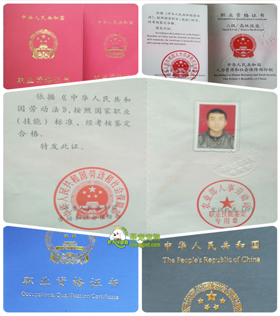 目前,圣宠宠物培训基地已成为国内最大的宠物美容师职业技能鉴定中心,并可颁发宠物美容师、训导师双国家级双证书的学校。以及中国畜牧业协会(NGKC)合作单位。因此,圣宠颁发证书已涵盖畜牧业协会结业证书以及国家劳动部认证证书。