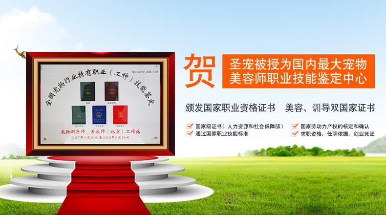 这一授权意味着圣宠宠物培训基地已完全满足宠物美容师及训导师培训标准,并具备颁发国家职业资格证书资质。