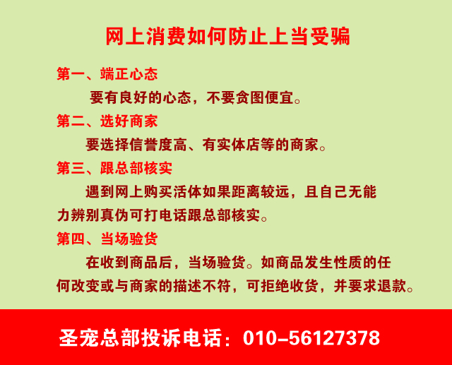 骗子的这种行为不仅损害了消费者的利益,更是对圣宠的名誉造成了严重影响。对此我公司除将追究其法律责任外,下面再教大家如何识别真假圣宠