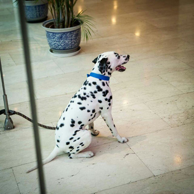 3、狗狗温顺,可以与陌生人友好相处,并且能配合演出。
