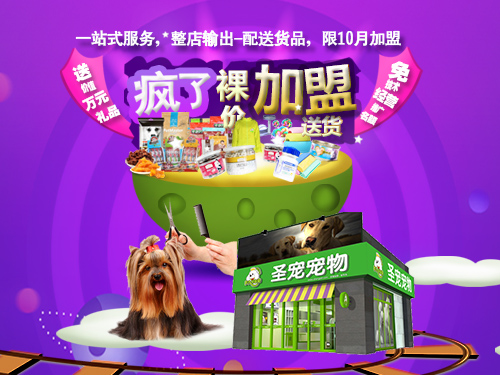 加盟圣宠可享:一站式服务+整店输出+配送货品等优惠,限10月加盟!……查看全文>>