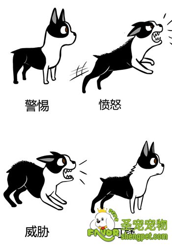 尾巴一开始遇到危险会垂下,如果被激怒,将会下垂并伴随着呲牙、眼睛向上看,身体呈拱形,准备进攻的姿态。