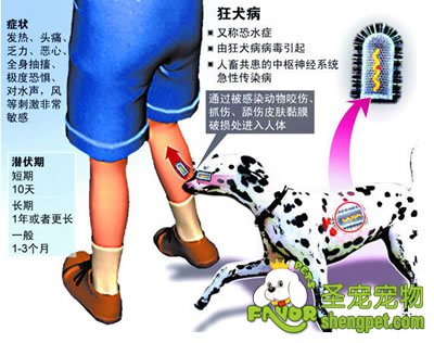 我们都知道狂犬病是一种非常可怕的病种,无论对人活或者狗危害都非常的大,这种病在起初的时候没有太明显的症状,所以被狗咬到之后一定要打破伤风针和狂犬疫苗,下面圣宠小编就详解狂犬病的症状以及传染途径。