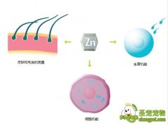 锌是大约200种含锌酶的构成元素,这些酶作用于细胞复制、碳水化合物和蛋白质代谢及细胞膜结构。锌对维生素A在血液中的传送和生殖功能非常重要。锌对于胶原质和角蛋白的合成也起着关键作用,因此锌是皮肤和被毛健康和伤口愈合的基础。