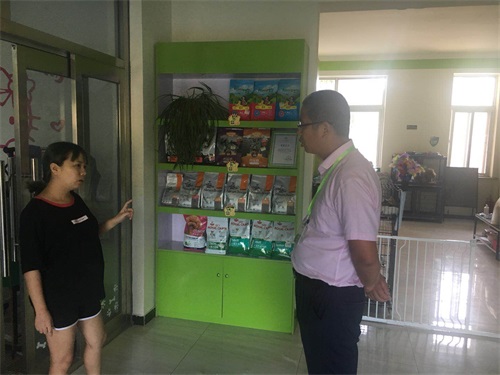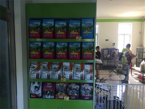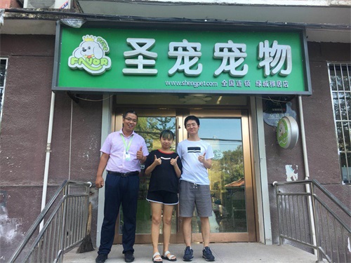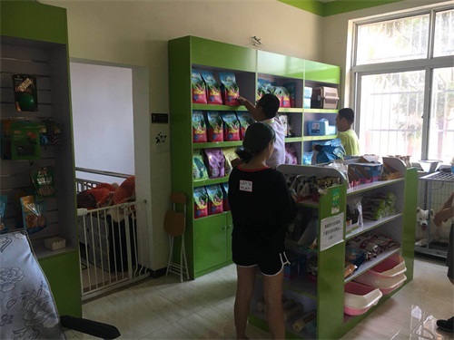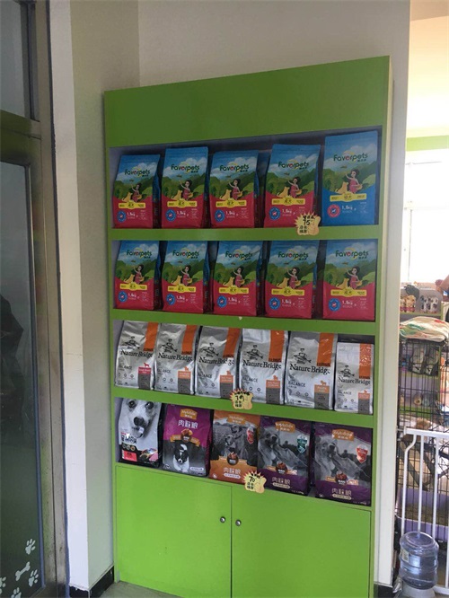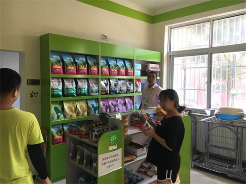 圣宠为保证没家圣宠店的营业额,安排经理巡店指导,经理来到圣宠宠物(北京绿城雅居店),告诉加盟商以后这样饱满的陈列为榜样,进行产品生动化陈列。