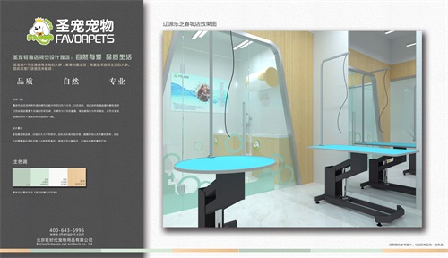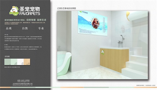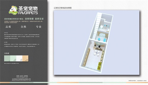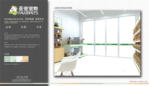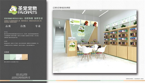 圣宠轻奢店视觉设计理念:自然有爱,品质生活。圣宠客户不仅是拥有宠物的人群,更是热爱生活,有爱追求品质生活的人群,因此圣宠总部为辽源东芝春城店设计装修效果图,以下就是辽源东芝春城店装修设计图: