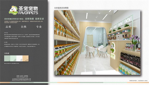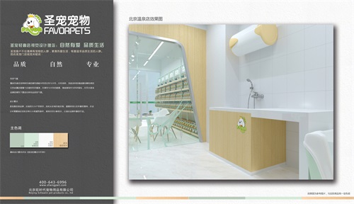 圣宠轻奢店视觉设计理念:自然有爱,品质生活。圣宠客户不仅是拥有宠物的人群,更是热爱生活,有爱追求品质生活的人群,因此圣宠总部为北京海淀温泉镇店设计装修效果图,以下就是北京海淀温泉镇店装修设计图: