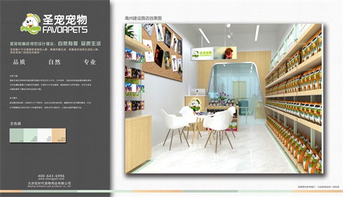 圣宠轻奢店视觉设计理念:自然有爱,品质生活。圣宠客户不仅是拥有宠物的人群,更是热爱生活,有爱追求品质生活的人群,因此圣宠总部为禹州建设路店设计装修效果图,以下就是禹州建设路店装修设计图: