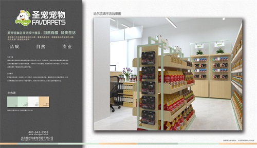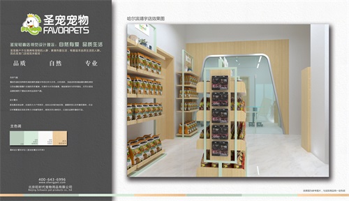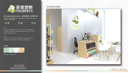 圣宠轻奢店视觉设计理念:自然有爱,品质生活。圣宠客户不仅是拥有宠物的人群,更是热爱生活,有爱追求品质生活的人群,因此圣宠总部为哈尔滨靖宇店设计装修效果图,以下就是哈尔滨靖宇店装修设计图: