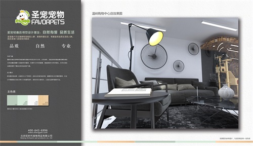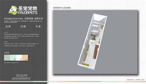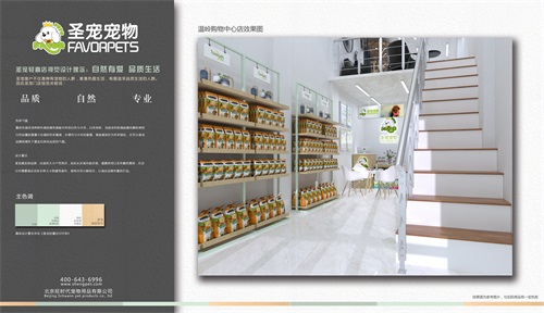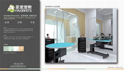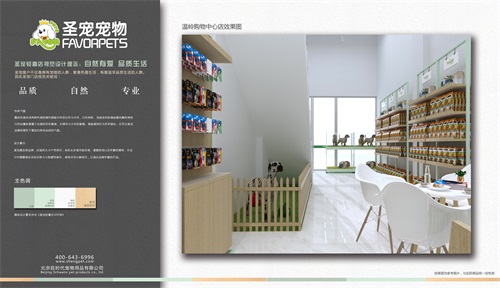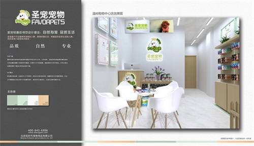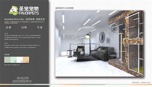 圣宠轻奢店视觉设计理念:自然有爱,品质生活。圣宠客户不仅是拥有宠物的人群,更是热爱生活,有爱追求品质生活的人群,因此圣宠总部为温岭购物中心店设计装修效果图,以下就是温岭购物中心店装修设计图: