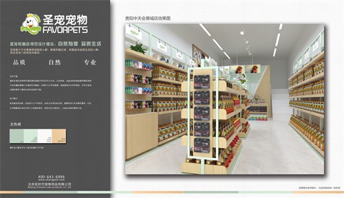 圣宠轻奢店视觉设计理念:自然有爱,品质生活。圣宠客户不仅是拥有宠物的人群,更是热爱生活,有爱追求品质生活的人群,因此圣宠总部为贵阳中天会展城店设计装修效果图,以下就是贵阳中天会展城店装修设计图: