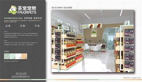 圣宠轻奢店视觉设计理念:自然有爱,品质生活。圣宠客户不仅是拥有宠物的人群,更是热爱生活,有爱追求品质生活的人群,因此圣宠总部为临沂东方购物广场店设计装修效果图,以下就是临沂东方购物广场店装修设计图: