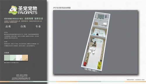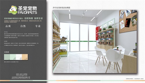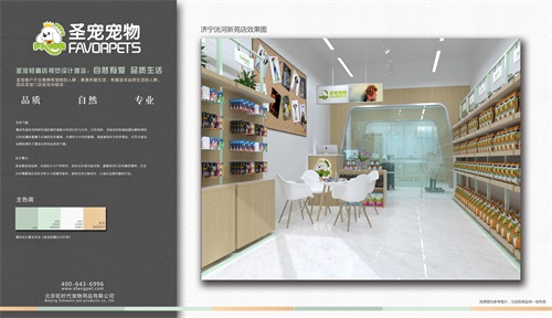 圣宠轻奢店视觉设计理念:自然有爱,品质生活。圣宠客户不仅是拥有宠物的人群,更是热爱生活,有爱追求品质生活的人群,因此圣宠总部为济宁洸河新苑店设计装修效果图,以下就是济宁洸河新苑店装修设计图: