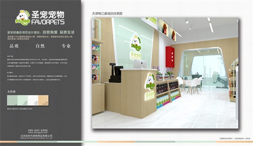 圣宠宠物天津梅江康城店装修设计图 圣宠轻奢店视觉设计理念:自然有爱,品质生活...[详情]
