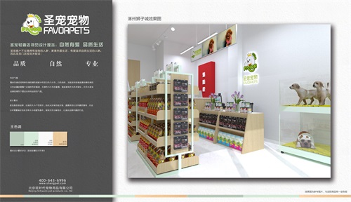 圣宠轻奢店视觉设计理念:自然有爱,品质生活。圣宠客户不仅是拥有宠物的人群,更是热爱生活,有爱追求品质生活的人群,因此圣宠总部为涿州狮子城店设计装修效果图,以下就是涿州狮子城店装修设计图: