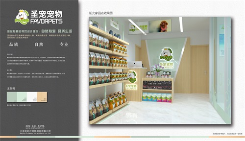 圣宠宠物哈尔滨阳光家园店装修设计图 圣宠轻奢店视觉设计理念:自然有爱,品质生活...[详情]