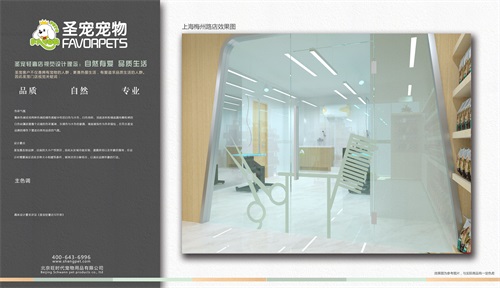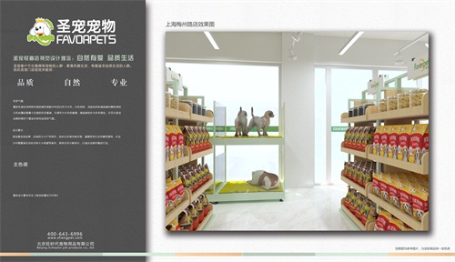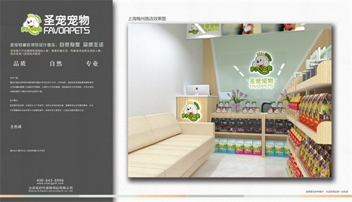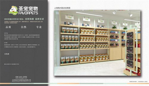 圣宠轻奢店视觉设计理念:自然有爱,品质生活。圣宠客户不仅是拥有宠物的人群,更是热爱生活,有爱追求品质生活的人群,因此圣宠总部为梅州路花好悦园店设计装修效果图,以下就是梅州路花好悦园店装修设计图: