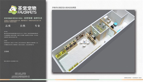 圣宠宠物济南市长清区恒大绿洲店装修设计图 圣宠轻奢店视觉设计理念:自然有爱,品质生活...[详情]