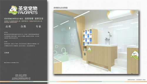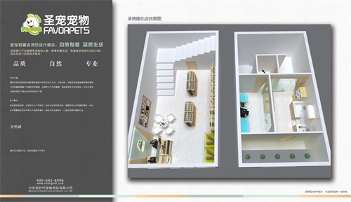圣宠轻奢店视觉设计理念:自然有爱,品质生活。圣宠客户不仅是拥有宠物的人群,更是热爱生活,有爱追求品质生活的人群,因此圣宠总部为承德隆化店设计装修效果图,以下就是承德隆化店装修设计图: